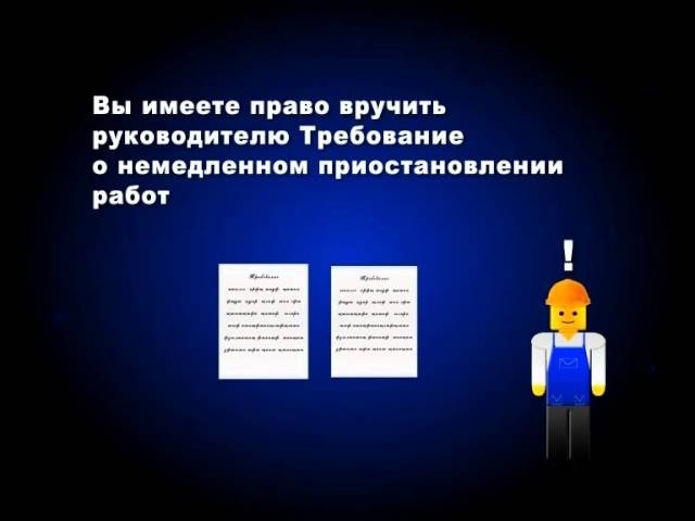 - Предъявлять требования к должностным лицам о приостановке работ в случаях непосредственной угрозы жизни и здоровью работников.